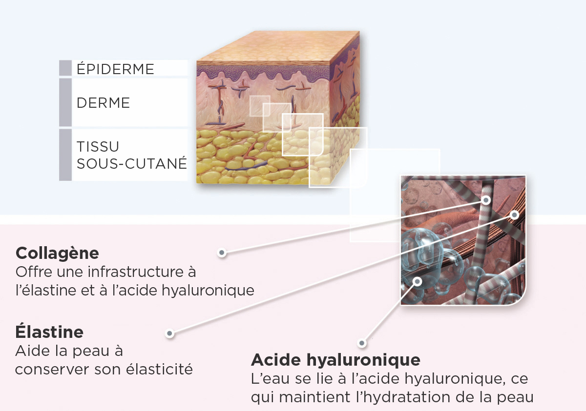 L’acide hyaluronique est un sucre naturellement présent dans l’organisme qui garde la peau hydratée et crée du volume grâce à sa capacité à se lier aux molécules d’eau. La gamme de produits Restylane est conçue pour reproduire l’effet de l’acide hyaluronique naturellement présent dans l’organisme.
