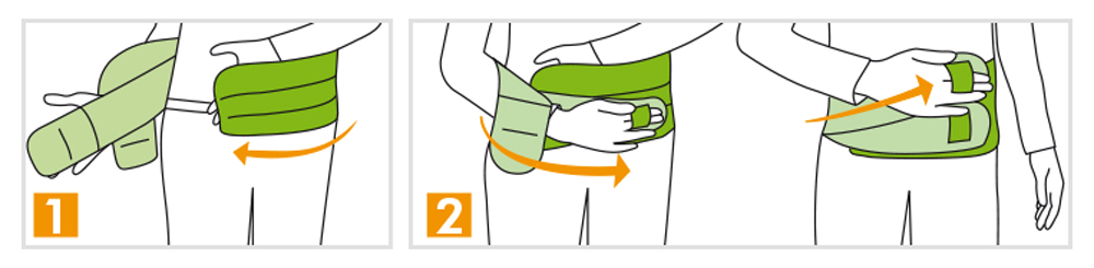 2. Ajuster les sangles abdominales inférieure puis supérieure à l'aide des passe-mains, plus ou moins serrées en fonction de la contention souhaitée.