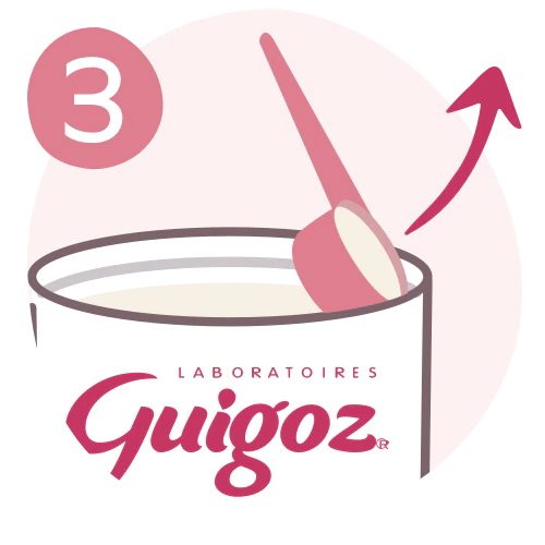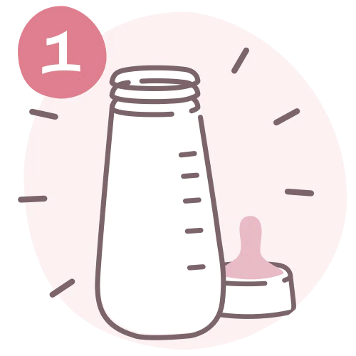 - Afin d'éviter la formation de grumeaux, reconstituez le biberon avec de l'eau tiède (<40°C) et utilisez un biberon de large volume pour faciliter le mélange.