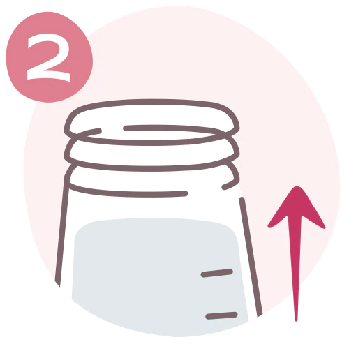 Consultez le tableau pour connaître le volume d'eau exact à verser dans le biberon. Versez l'eau et faites tiédir (max 40°C) si vous le souhaitez. |