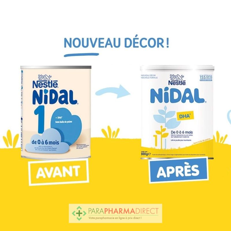 Le lait en poudre Nidal 1 de NESTLE convient aux bébés de 0 à 6 mois.