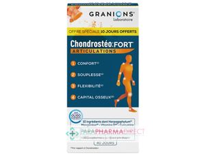 Complément alimentaire à base de Glucosamine, Chondroïtine, MSM, Curcuma, extrait de Bambou, Bromélaïne, Vitamines C et E, Manganèse, Cuivre et Bore.